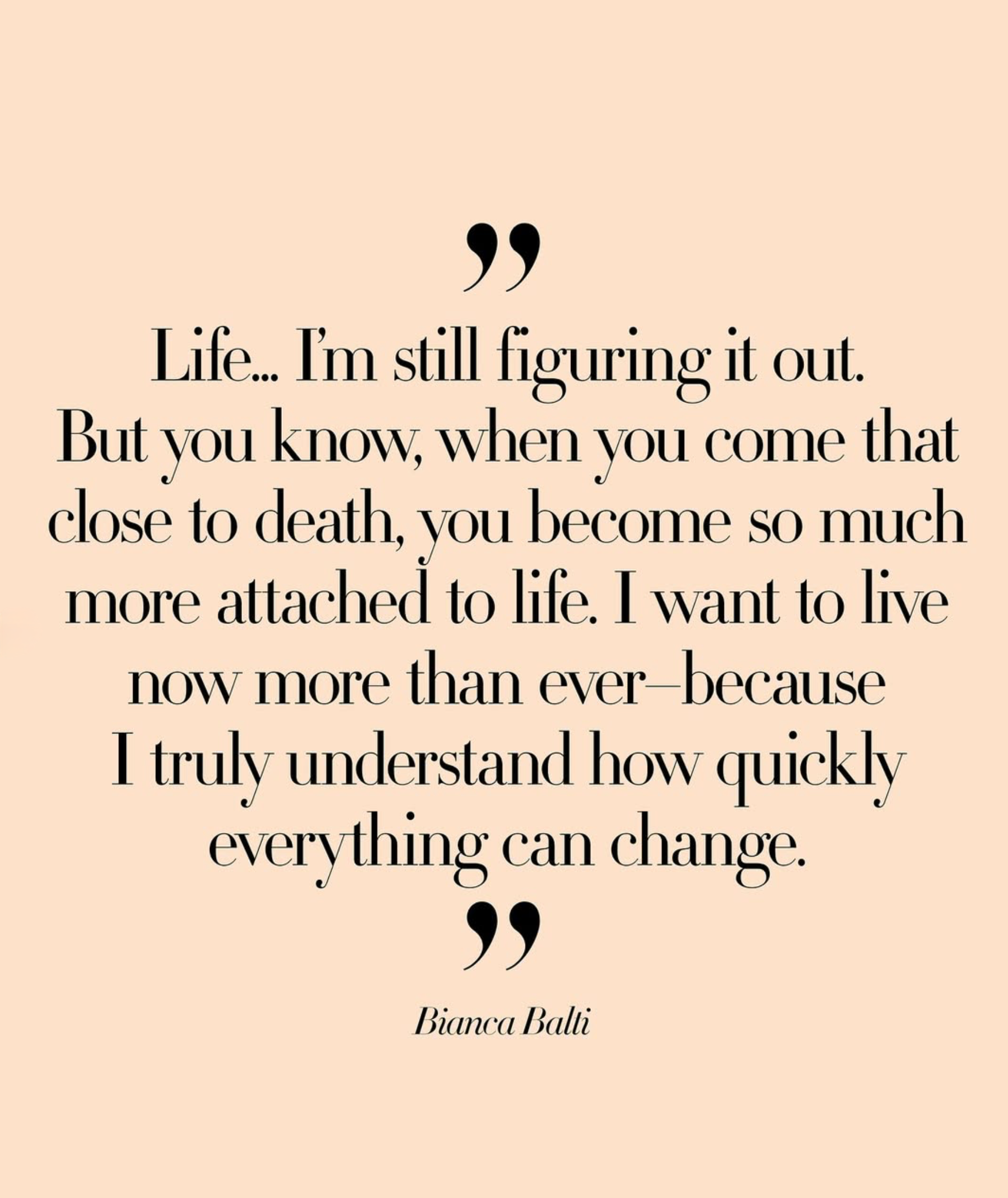 Balti, now 41, is just so composed, elegant, beautiful and cheerful after being wacked big-time about the fragility of life, that it’s remarkable — and inspiring — to see how she is handling her diagnosis.