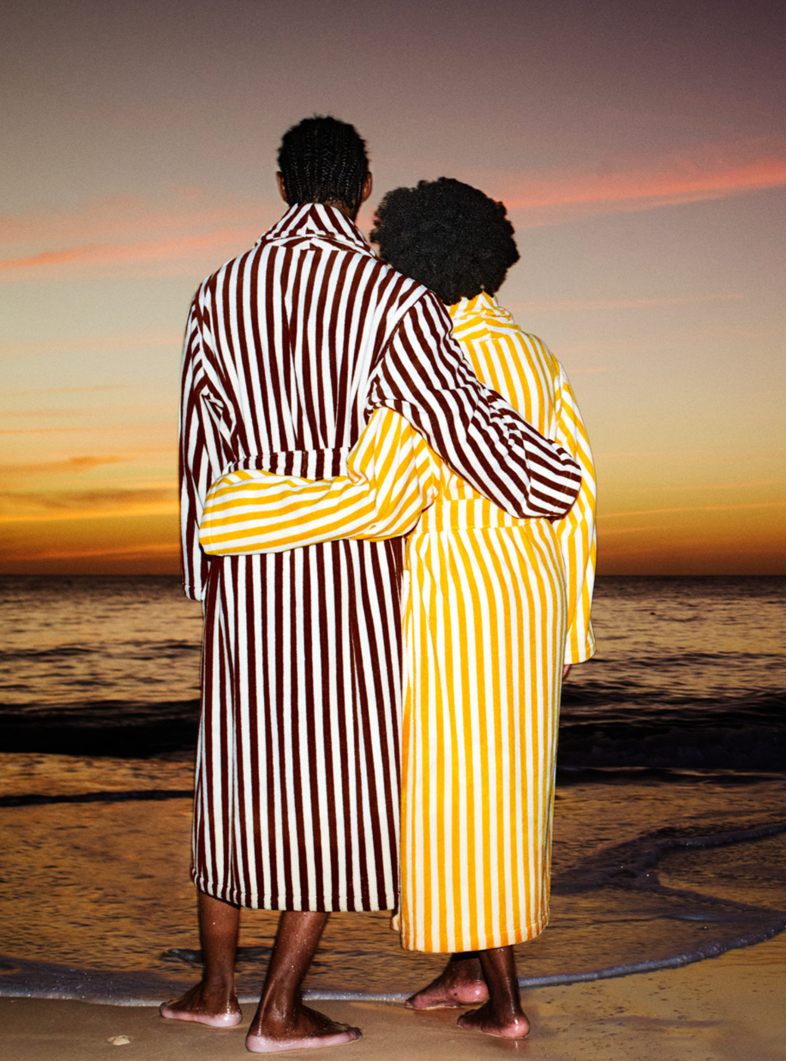 There’s a capsule collection of striped beach robes as well as understated ceramic candle holders, woven accessories and amber-hued glassware, which is perfect for hosting. In line with the summer mood and the friendly and fun atmosphere of the hotel, the range also includes a playful beach tennis set and a wooden backgammon board.