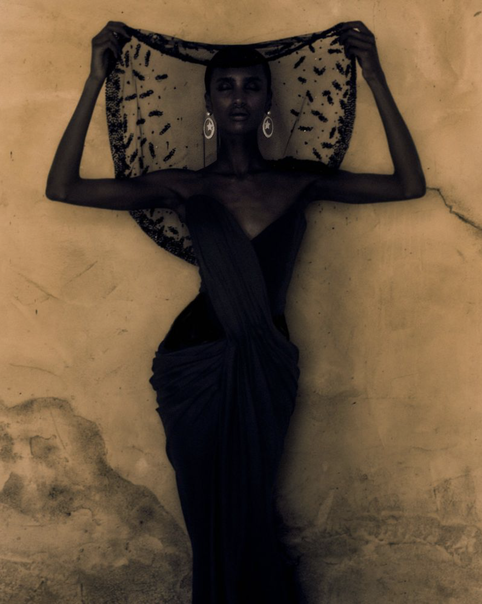 Kawa H. Pour styles the Somali-British model raised in north London in Chanel, Dior, Dolce & Gabbana, Elisabetta Franchi, Maison Alaia and more at the Bab Al Shams Desert Resort in Dubai./ Makeup by Ruby Mazuel; hair by Ildana Khalitova