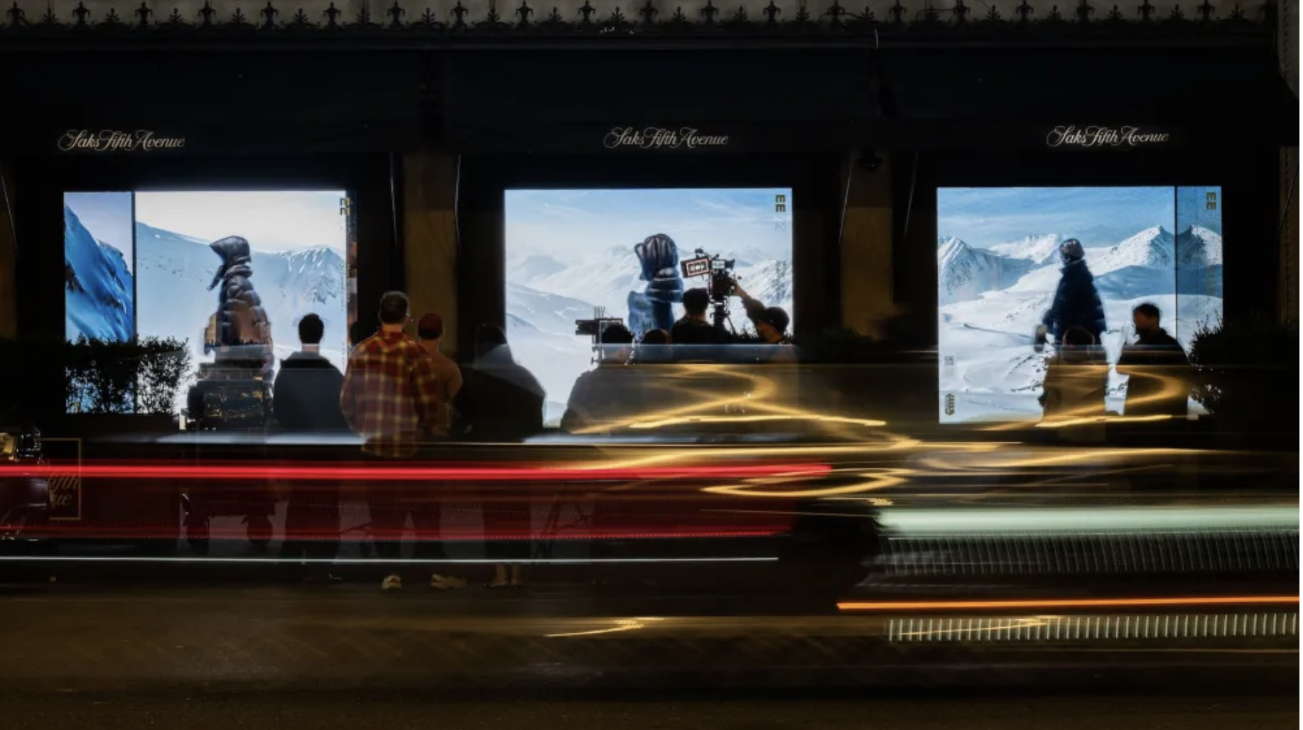 Moncler and Enninful bring this Moncler x EE72 vision to life with a window display at Saks Fifth Avenue’s New York Flagship, timed with the start of New York Fashion Week. The presentation spans seven windows at 5th Avenue and 50th Street: three depict golden dunes, three showcase snowy peaks, and the central window represents the confluence of sand and snow.