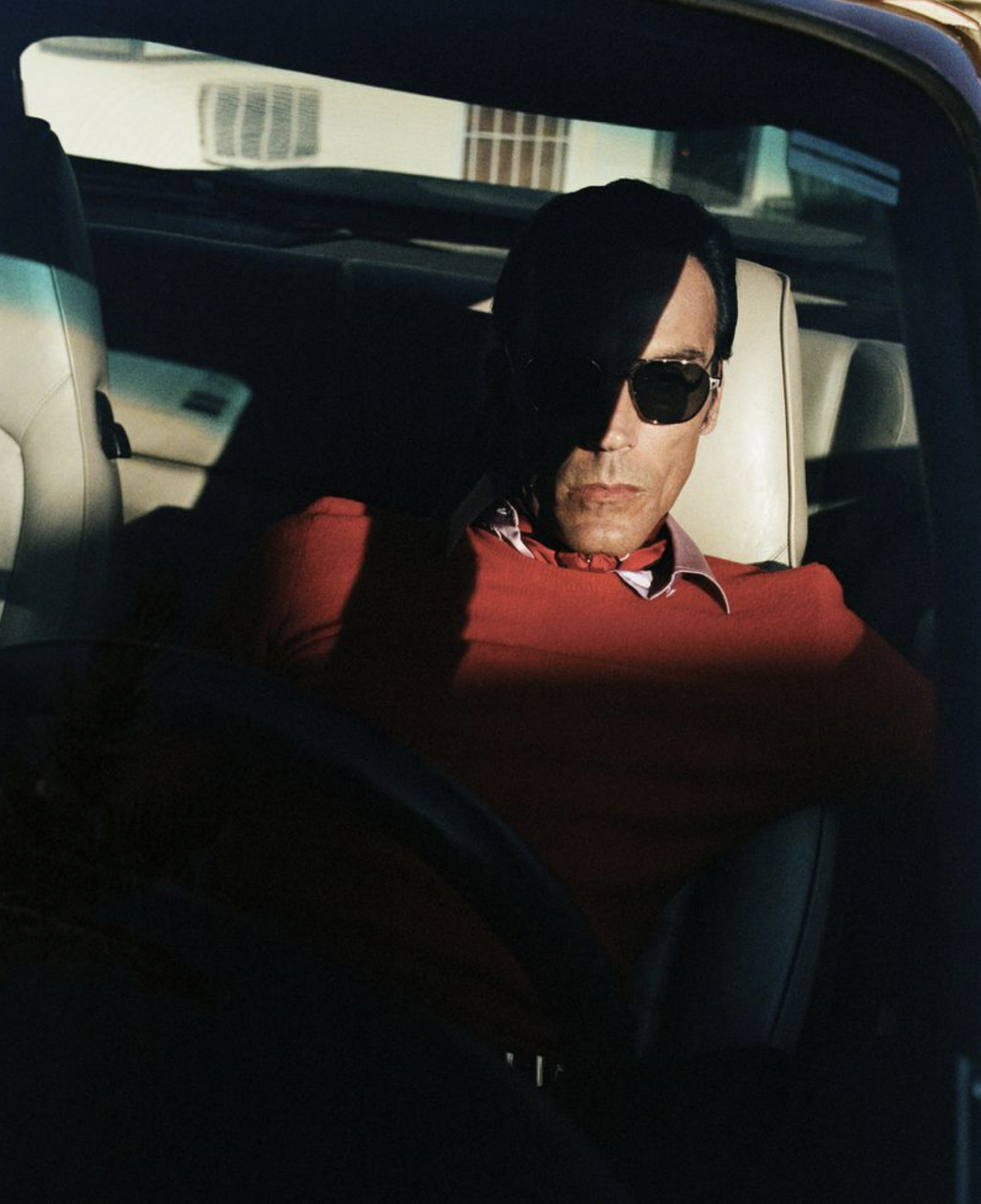 Scott Barnhill wears Louis Vuitton jacket and pants; Emporio Armani three-piece suit; Celine red pencil skirt; Saint Laurent by Anthony Vaccarello black coat; Tom Ford robe and more.