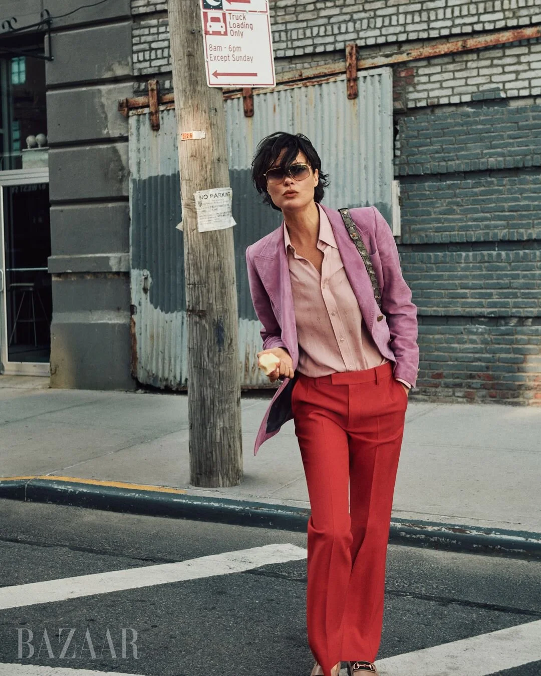 Model icon Shalom Harlow wears the pants in ‘Paint the Town’, styled by Elissa Santisi in Dior, Giorgio Armani, Gucci, Loewe, Prada, Ralph Lauren, Saint Laurent by Anthony Vaccarello, Tory Burch and Victoria Beckham. Photographer Cass Bird [IG] captures Harlow in her second Harper’s Bazaar September 2021 New York fashion story, moving from Harper’s Spain to Harper’s US./ Hair by Ward Stegerhoek; makeup by Romy Soleimani