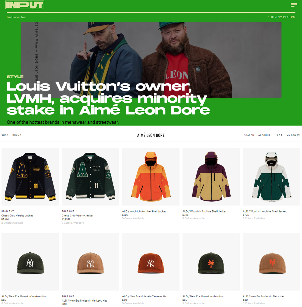 The AOC narrative goes in-depth on the topic of embroidered fashion and we concluded it with news of LVMH’s minority investor position in ALD, another varsity, old-school Queens, New York fashion brand. Not as polished as Kenzo, ALD has roots in a different immigrant experience and has a more working class vibe.