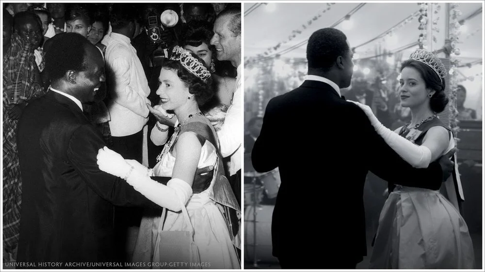 Oh wait — it’s coming into view. British Vogue can tell the famous story in which Queen Elizabeth & Ghana President Nkrumah danced a ‘Diplomatic Foxtrot’ in Ghana. It was a highest level mission that required the Queen to persuade Nkrumah to favor Britain and not make an alliance with Russia.