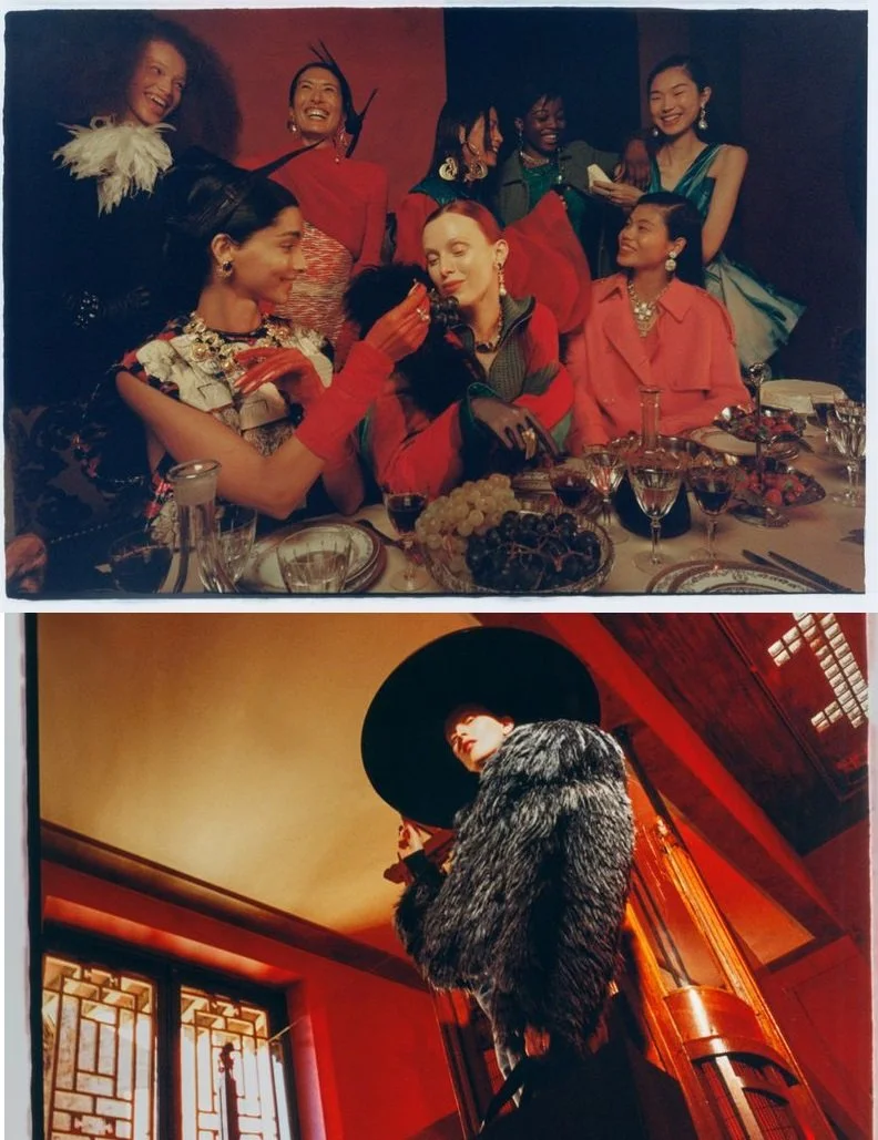 Vogue China December 2021 cover girls Karen Elson, Suzi De Givenchy, Tianna St. Louis and Tindi Mar add two more members to the fashion story cast: Lisa Lu and Precious Kevin.