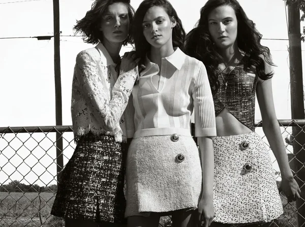 /Stylist Marie Amelie Sauve proves that no frills ‘Clean Living’ fashion needn’t mean no thrills. Maria Bradley, Marte Mei Van Haaster, Kremi Otashliyska and Ondria Hardin launder the style essentials checklist for W Magazine’s March issue, lensed by Michael Thompson.