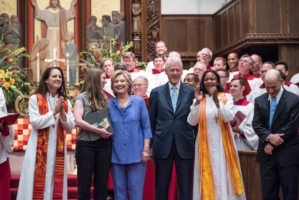 As I was listening to Chelsea and remembering those early weeks and months here in Washington for us, and how thrilled I was that she found so much support here, I of course thought about my own Methodist church growing up in Park Ridge, Illinois, where I had the same kind of experience.