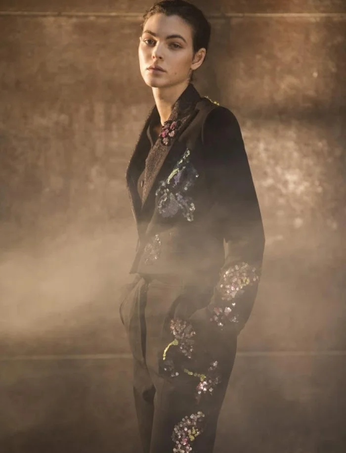 Amber Valletta in Menswear for Harper's Bazaar Spain October 2017 by Greg Kadel