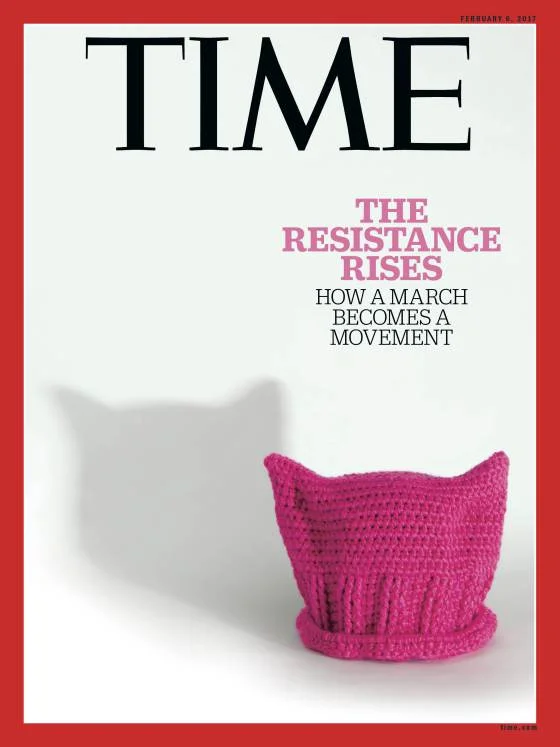 In the ultimate accomplishment -- a salvo to US President Donald Trump, who insists falsely that he's had more TIME magazine covers than anyone (Nixon wins) -- pink Pussyhats are on the move, straight on to the cover of this week's TIME.