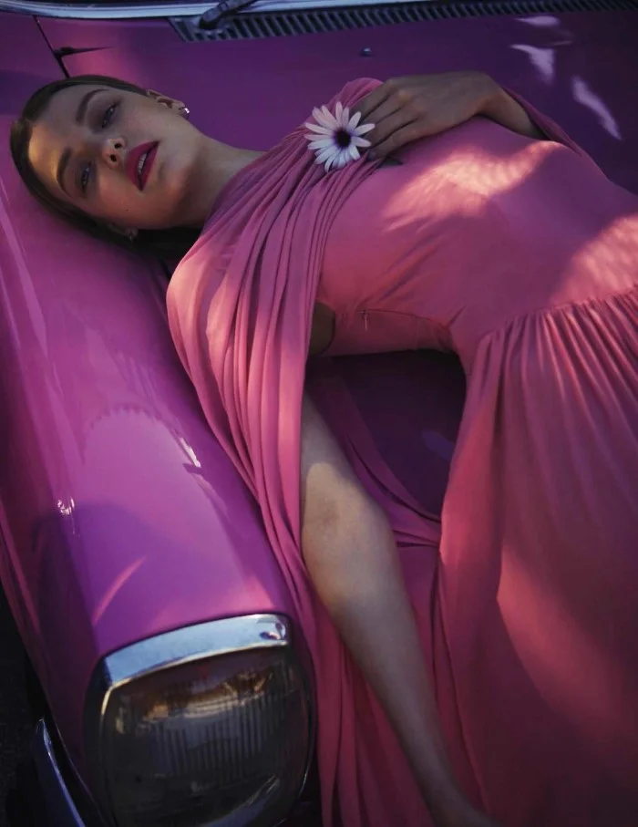 /Welcome to the world of “San Junipero,” a magical coastal town in California awash in neon lights, dance clubs, and idealism. Roos Abels channels the Netflix series, styled by Margherita Moro in Rory Payne images for Vogue Spain May 2017./ Hair by Nao Kawakami; makeup by Jenny Coombs