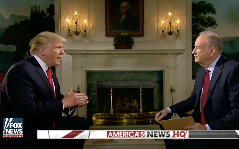 America's President Donald Trump made it clear to the New York Times Wednesday that he stands with his friend Fox News's Bill O'Reilly, under fire over an expose about previously unknown Fox settlements over sexual harassment and sexual assault claims.