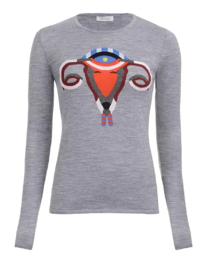 /Designer Gabriela Hearst is standing with Planned Parenthood, launching pre-sales on a merino wool sweater intarsia'd that unifies a ram's head and ovaries. Vogue explains that Hearst originally conceived the sweater as her entry into the Woolmark Prize competition, which took place in Paris on January 21, the same day as global Women's Marches. Note that Hearst won the prize.
