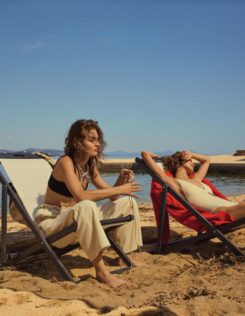 Models Grace Elizabeth and Birgit Kos hit the south of France in 'Moi, Je Joue', classic French looks styled by Verity Parker. Gregory Harris flashes the duo for Vogue UK July 2017./ Makeup by Lynsey Alexander; hair by Shon