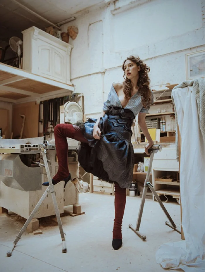 /Model Linda Zoppi is styled by Karolina Gendek-D'Andrea in poetic, art studio images. Virginia di Mauro captures 'Manufactured Emotions' for Knots Magazine.