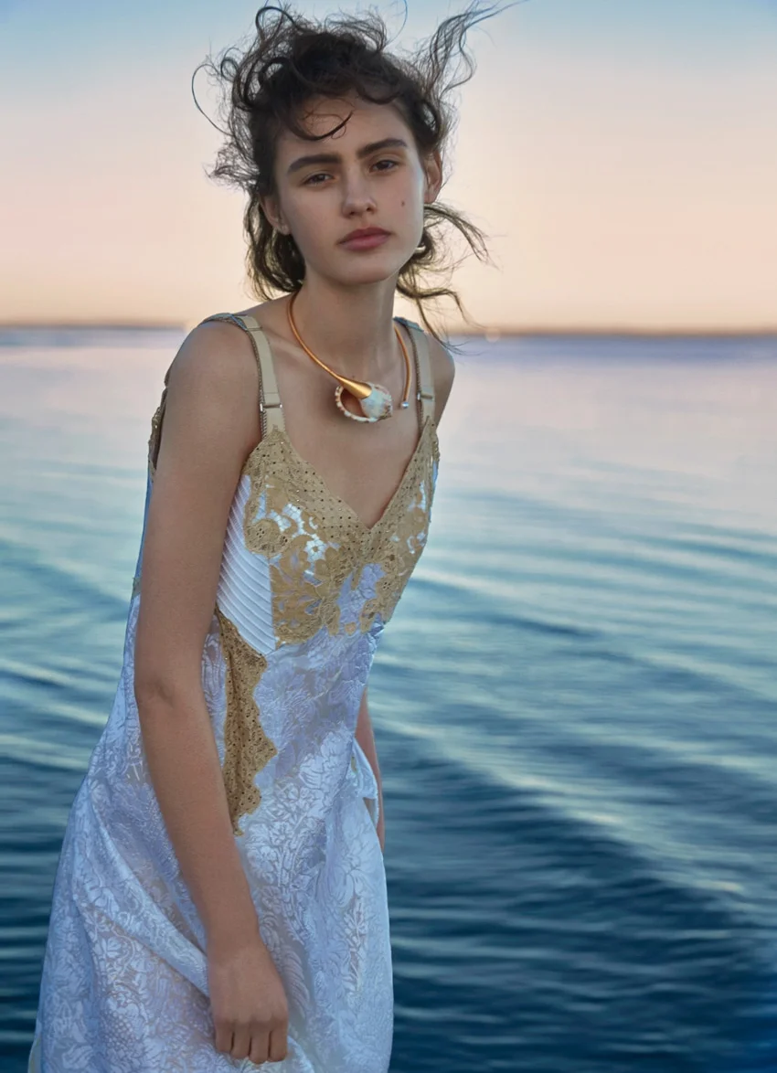 Model Aleyna Fitzgerald is styled by Naomi Smith in sea-goddess elegance, lensed by Sylve Colless for Harper's Bazaar Australia October 2017./ Hair by Sophie Roberts; makeup by Linda Jefferyes