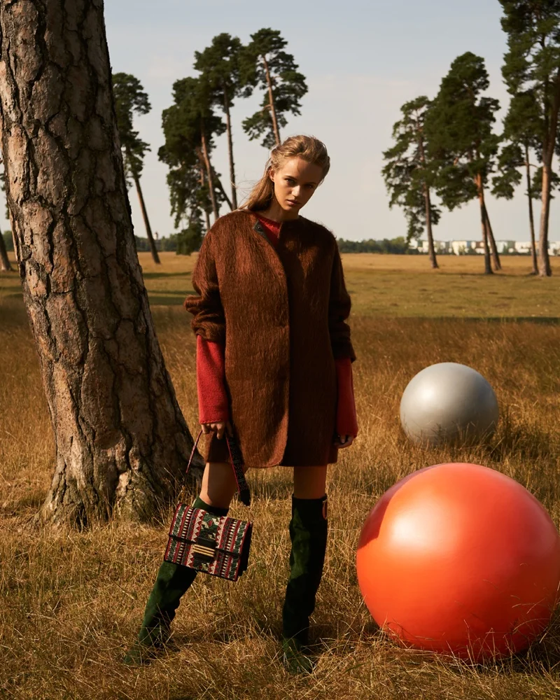 /Model Diana Moroz covers Glamour Mexico’s November 2018 issue, lensed by Linda Leitner. Tamina von Ribaupierre styles Moroz in ‘High Ball Autumn’ coats, knitwear and boots/shoes in a fall foliage color palette.