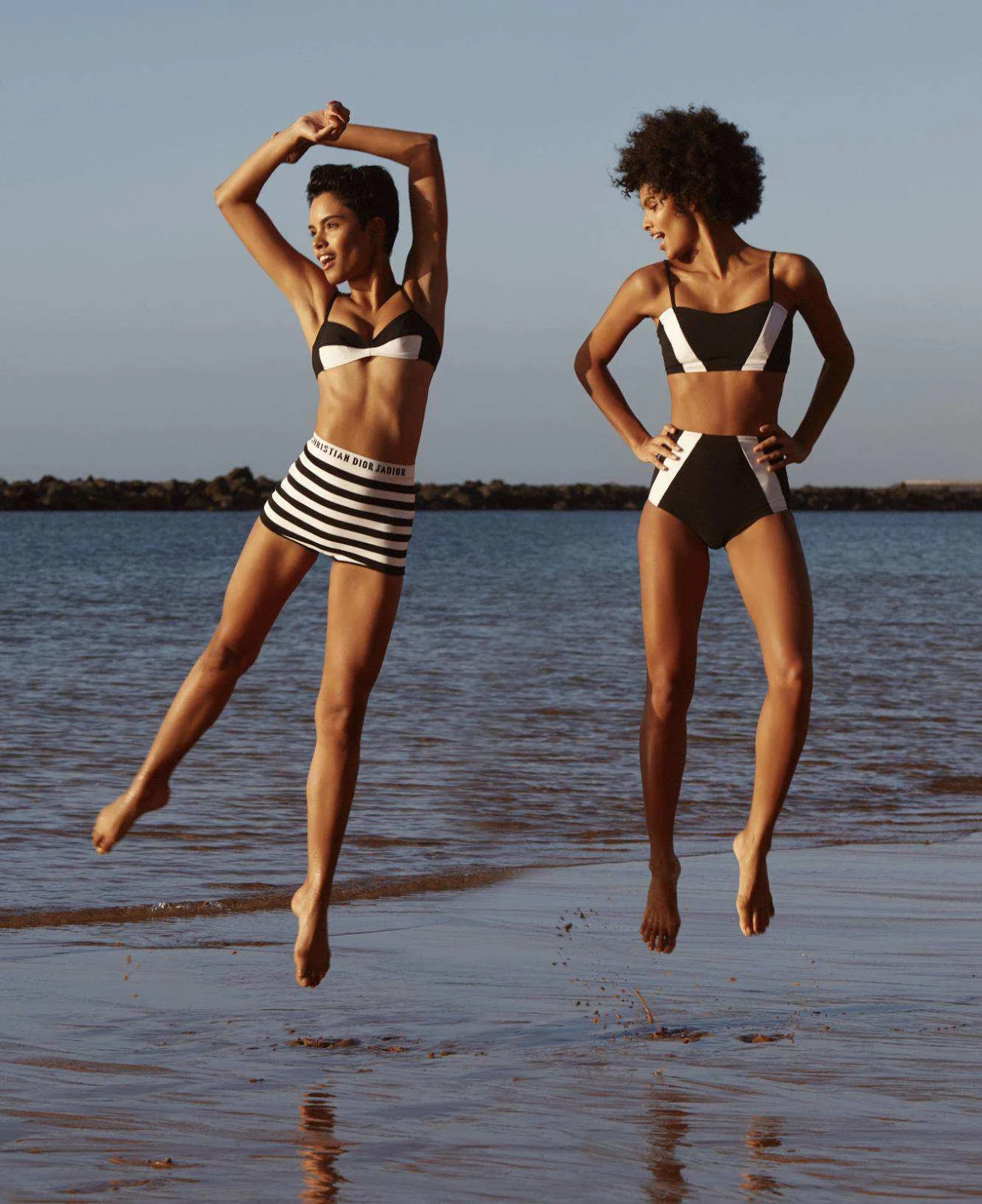 /Models Mariana Pardhino & Luanna Pinheiro get water babies exposure in two beach scene editorials styled by Imruh Asha. Photographer Carlijn Jacobs is behind the lens for Marie Claire US May 2018./ Hair by Hester Wernert; makeup by Kathinka Hastert
