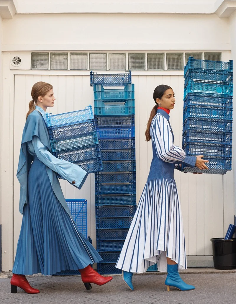 /Models Nora Attal and Signe Veiteberg are styled by Alexandra Carl in tailored modernity from Louis Vuitton, Joseph, Roksanda, Victoria Beckham, Miu Miu, Marc Jacobs and more. Photographer Jen Carey flashes the duo for WSJ Magazine September 2018./ Hair by Vi Sapyyapy; makeup by Athena Paginton; set design by Valerie Weill