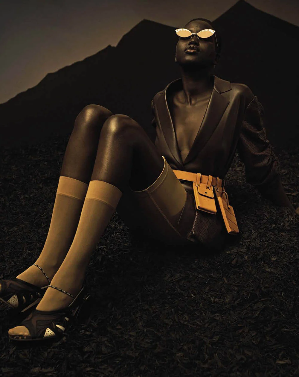 Top model Adut Akech is styled by Clare Richardson in all Fendi for ‘The Last Hour’. Josh Olins is behind the lens for Vogue Italia April 2019./ Hair by Cim Mahony; makeup by Francelle