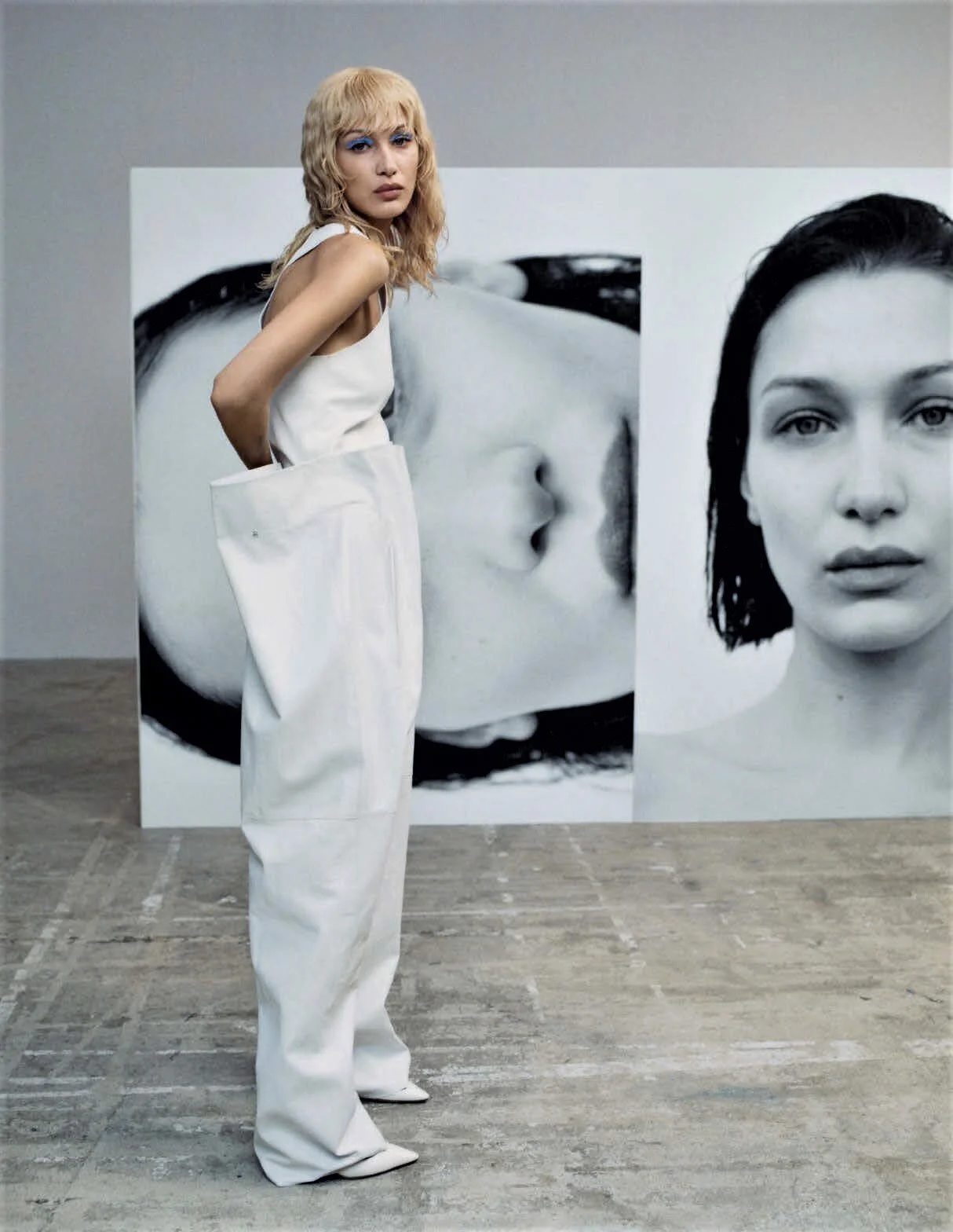 Supermodel Bella Hadid is styled by Suzanne Koller in ‘Bella Vera’, a collection of stylist essentials from Prada, Valentino and more. Photographer Zoe Ghertner is in the studio, as Bella goes naturally makeup free for Vogue Italia March 2020./ Hair by Gary Gill; makeup by Lauren Parsons