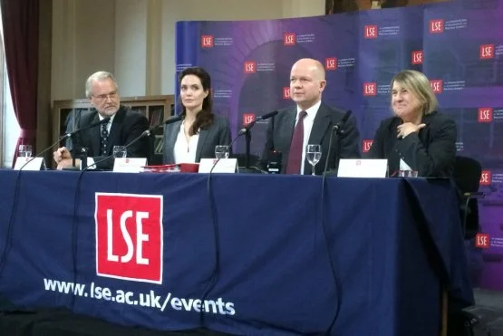 Once again people are talking about Angelina Jolie’s ‘alarmingly thin’ body, revealed in her arrival in London for a very special day in Jolie’s life. Angelina joined former British Foreign Secretary and now Leader of the House of Commons William Hague at the London School of Economics to announce the opening of the London Center For Women, Peace & Security.