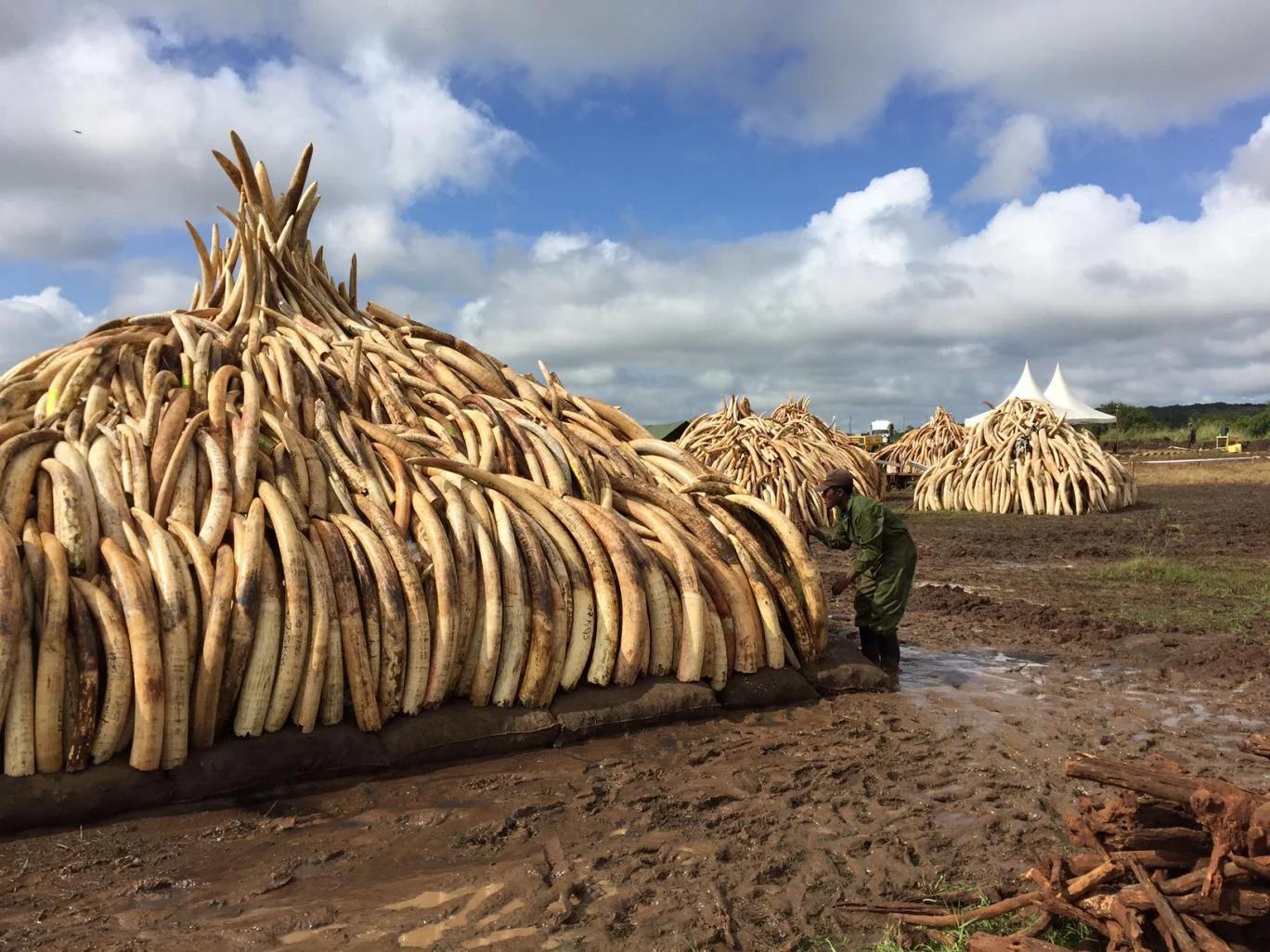 /Kenya's President Uhuru Kenyatta will once again conduct a mass burning of ivory and rhino horn, setting fire to about 105 tons of ivory and 1.35 tons of rhino horn, representing about 4000 dead elephants. . The scale of the burning towers over Kenyatta's March 2015 fire of 15 tons of elephant ivory, called the largest ever burned in Africa, a 10-foot tall pyre that smoldered for days until the ivory was reduced to ash.