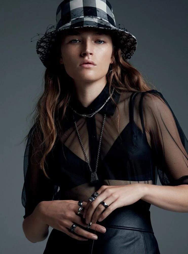 IMG model Molly Smith is styled by George Karapetis in ‘Punk Couture’, lensed by Berlin-based Anna Daki for Vogue Greece October 2019.