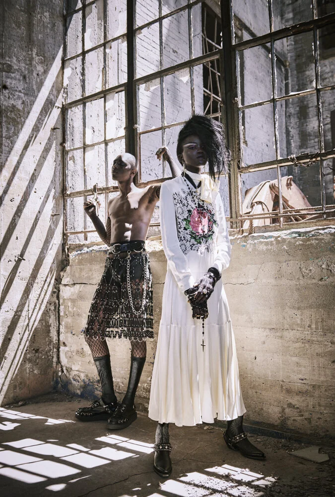 Models Ruby Aldridge and Saidou Diallo star in a superb Goth style editorial ‘Destination: Unknown’. In the words of Mixte Paris, the two women “seem to wander a post-apocalyptic world in search of their lost faith”. Matthew Brookes is behind the lens, creating perfect images styled by Bill Mullen See all the credits at Mixte.