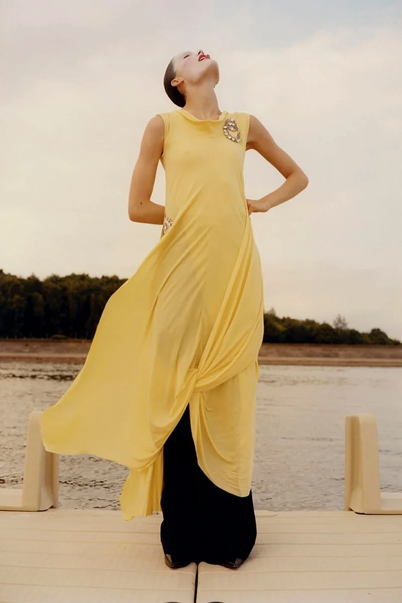 Model Elsemarie Riis is styled by Marie Chaix in ‘Gold Rush’, lensed by Colin Dodgson for Double Magazine #38, focused on ‘By the River’.