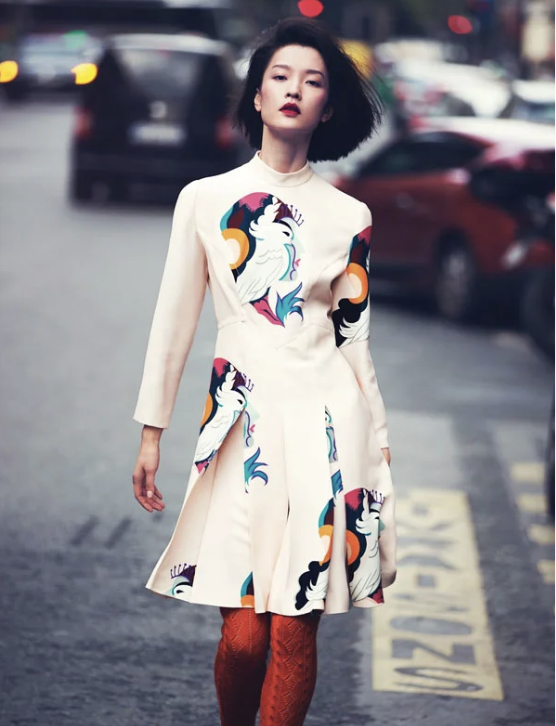 /Model Du Juan celebrates Architectural Digest China's June 2018 cover story. styled in Prada by Jeff Lee and lensed at the Prada Foundation's new cultural center Prada Rong Zhai in Shanghai.