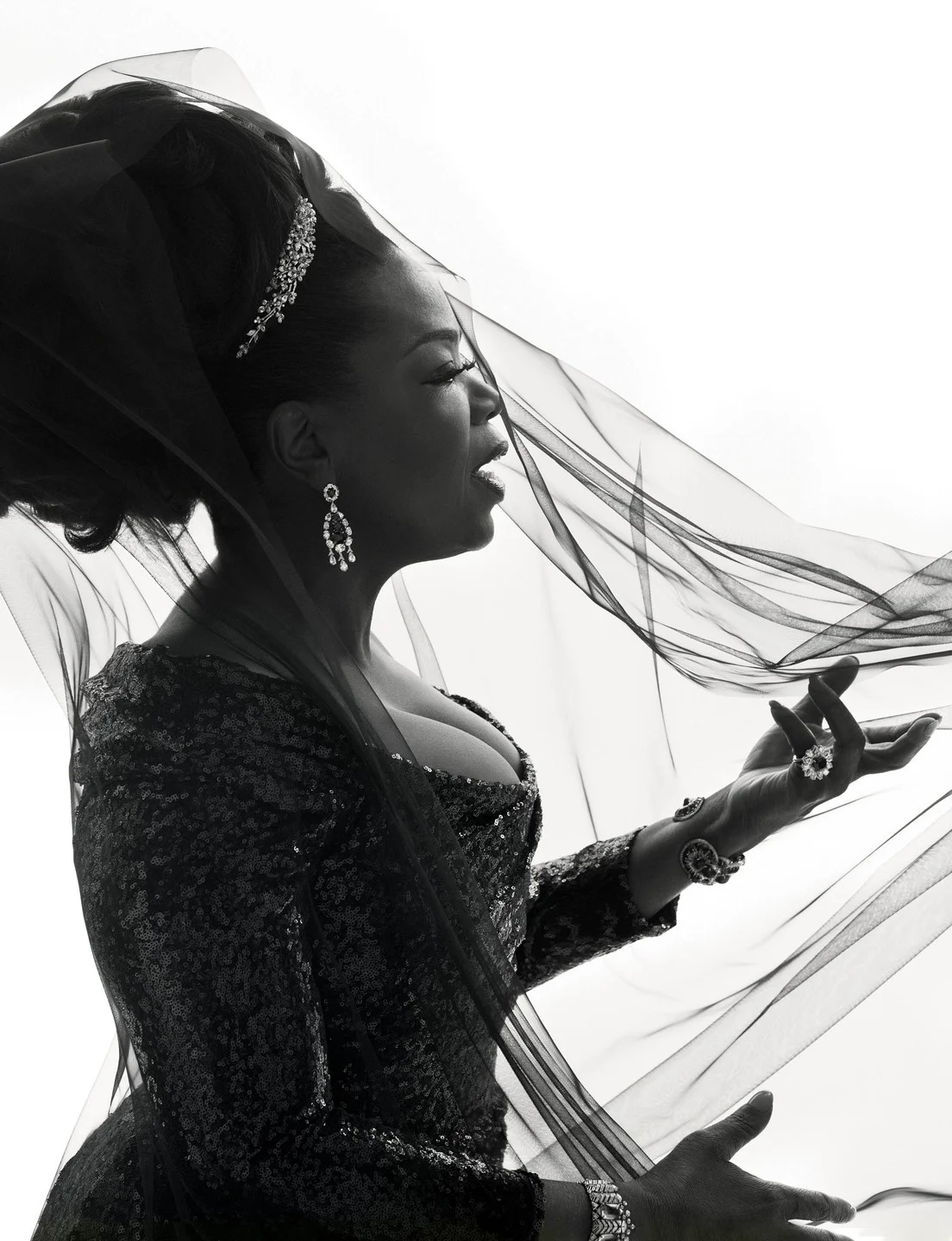 Oprah dazzles in a series of bespoke fashion created for her by Erdem, Christopher Kane, Simone Rocha, Stella McCartney, Vivienne Westwood and Alexander McQueen in 'Oprah's Next Act', styled by British Vogue's Edward Enninful. Photographers Mert & Marcus capture Oprah as an empress sharing her thoughts on race, feminism, her Royal wedding appearance, the loves and losses in her life – and that rumored move into politics – in a rare one-on-one interview with writer Decca Aitkenhead./ Hair by Nicole Mangrum and Malcolm Edwards; make-up by Derrick Rutledge