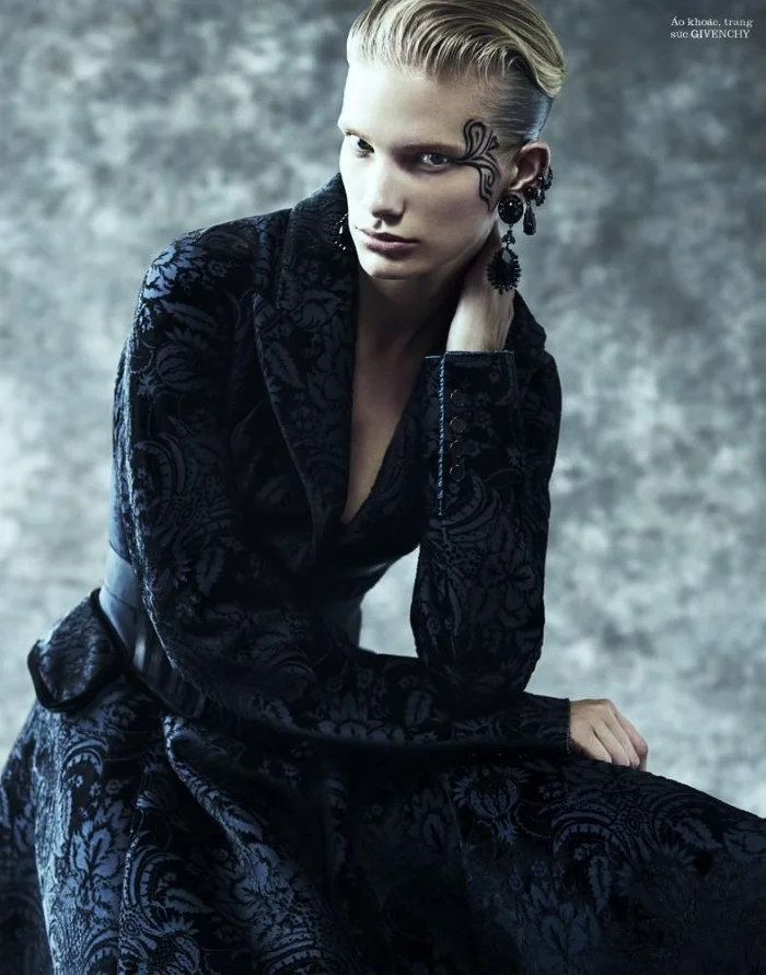 Model Karolina Smetek is styled by Simon Gensowski in DeMarcus Allen images for Elle Vietnam July 2017./ Hair by Chiao Shen; makeup by Lorandy