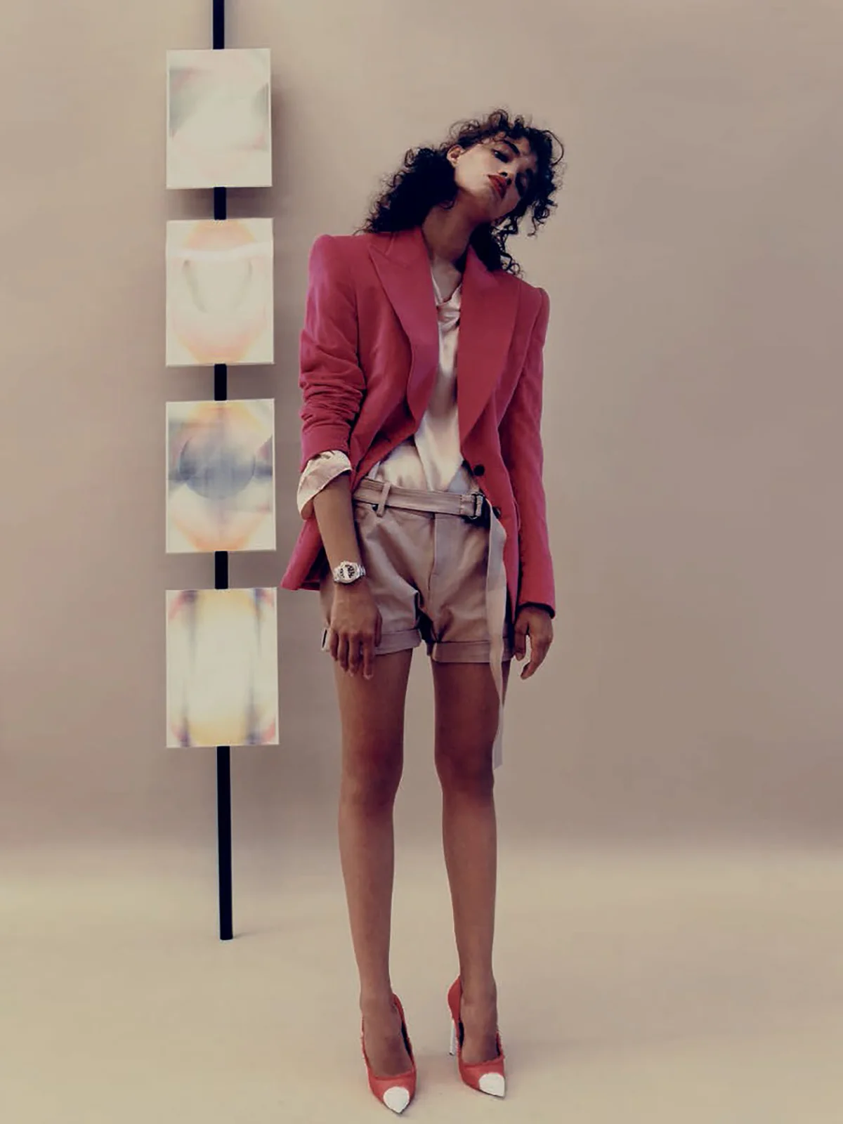 Brazilian model Ellen Rosa wears Burberry, Max Mara, Ralph Lauren, Saint Laurent and Valentino, styled by Joanna Hillman in ‘Nuevas Formas’. Zoey Grossman is behind the lens for Harper’s Bazaar Spain July 2019./ Hair by Sylvia Wheeler; makeup by Sir John