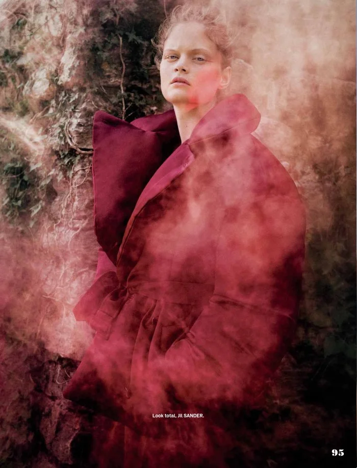Model Nathalia Oliveira is red all over, styled in sensual rouge by Rebecca Beglini. Photographer Fabio Leidi flashes Nathalia in the wild for Elle Mexico August 2017./ Hair by Mario Minnuno; makeup by Roman Gasser