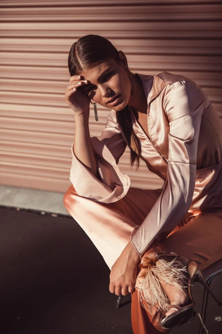 Model Ellie Brinkman is styled by Meggy Smith in glittering neutrals for Requiem Of Romance. Photographer Liane Hurvitz captures the stunning images for Factice Magazine April 2019./ Makeup + hair by Janice Wu