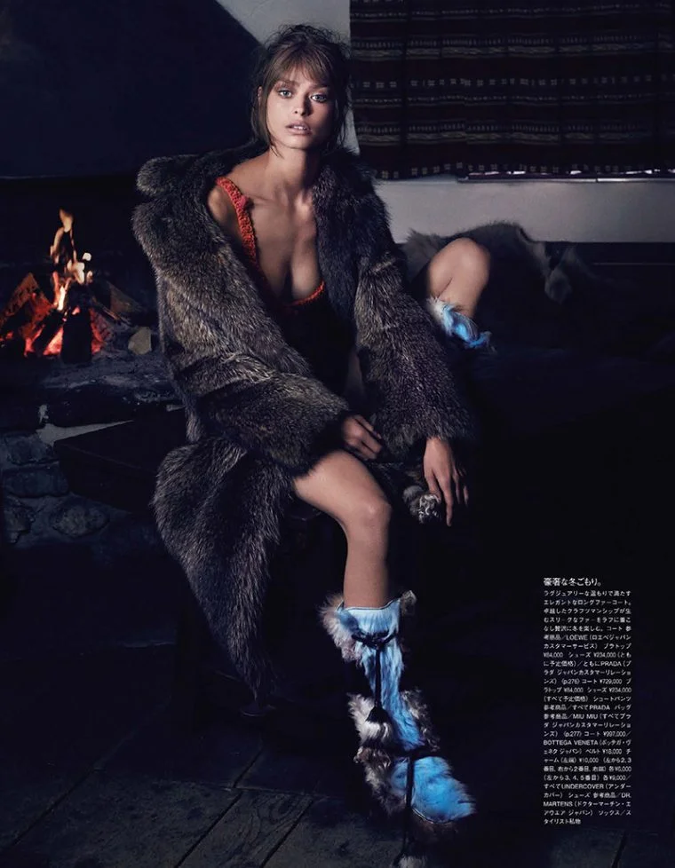 /Top model Birgit Kos is styled by Giovanna Battaglia Engelbert in 'The Frontiers of Winter', lensed byErik Torstensson for Vogue Japan 2018./ Hair by Franco Gobbi; makeup by Jessica Nieta