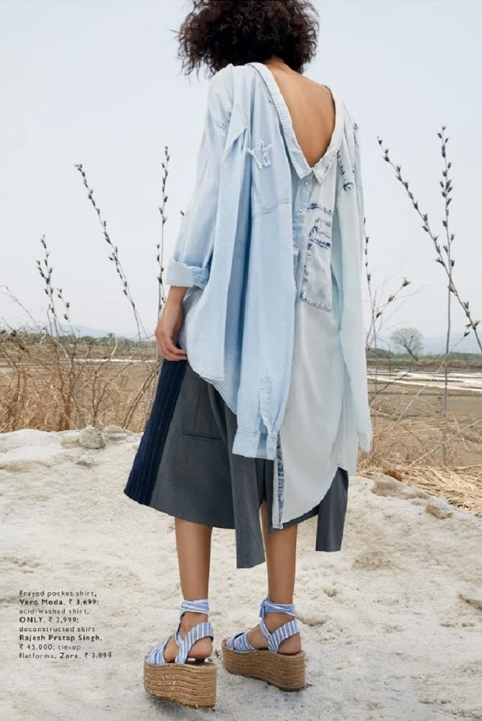 /Vinita Makhija styles models Naomi Janumala & Iman Eldeeb in 'Days In Denim', lensed by Anai Bharucha for Grazia India June 2017./ Beauty by Nisha Gulati
