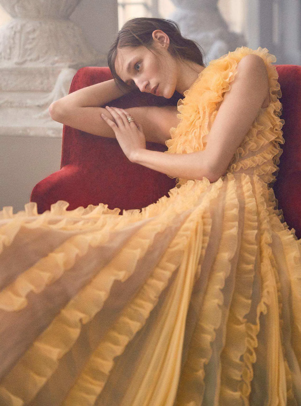 Model Cora Emmanuel is styled by Miranda Almond in birds of paradise, extravagant femininity from Chanel Haute Couture, Christian Dior, Givenchy Haute Couture and more . Photographer Richard Phibbs captures ‘The Wings Of Dove’ for Harper’s Bazaar UK June 2019./ Hair by Bjorn Krischker; makeup by Anita Keeling
