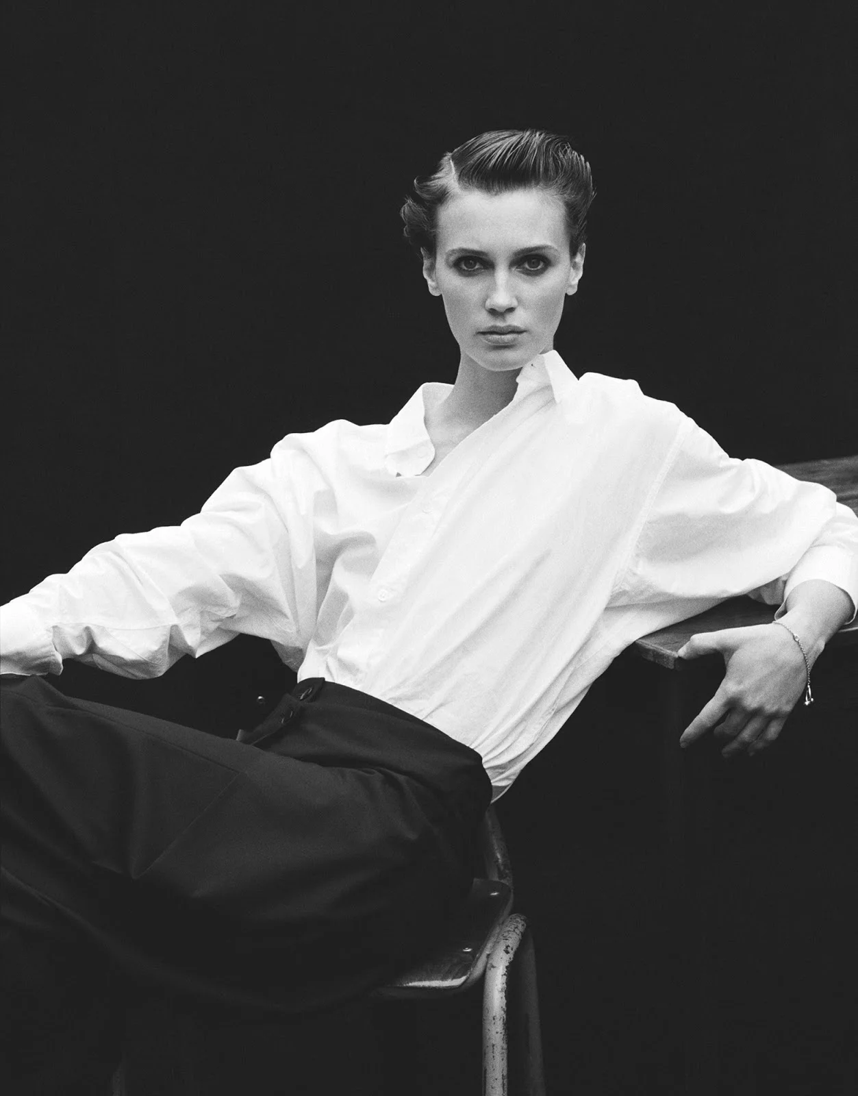 /Model Marine Vacth channels her love of androgynous looks, styled by Tamara Rothstein in 'Portrait'. Photographer Jamie Morgan is behind the lens for Interview Magazine Germany Winter 2017./ Hair by Karim Belghiran