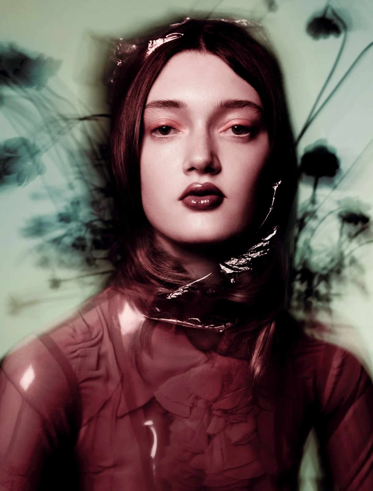 Model Jing Wen projects an exquisite 'Ethereal Beauty', styled by Katie Shillingford. Photographer Sølve Sundsbø captures exquisite images for Vogue China October 2017./ Hair by Malcolm Edwards; makeup by Sam Bryant