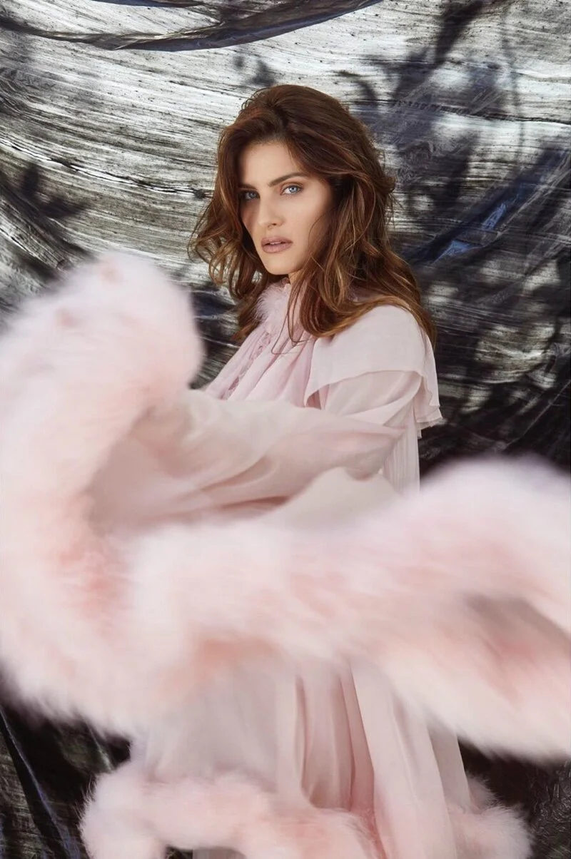 Isabeli Fontana strikes a note of Joan Collins abundance and Monaco glam for the cover of L’Officiel Italy’s September 2019 issue. Marcell Maia styles Isabeli in folds and feathers in images by Ricardo Abrahao. / Beauty by Rodrigo Costa