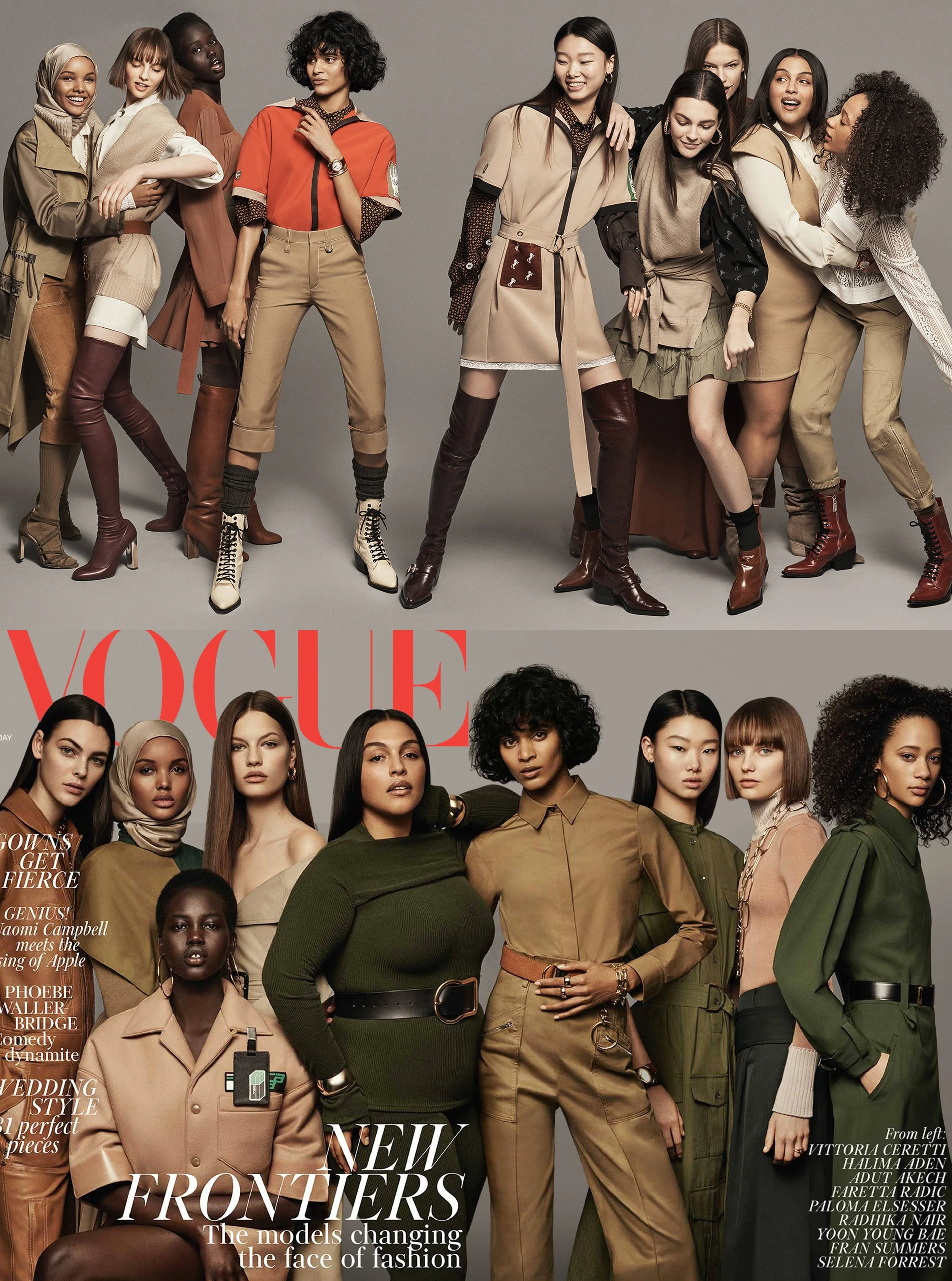 Edward Enninful is asking us to view his British Vogue cover through this lens, adding Radhika Nair, Yoon Young Bae, Faretta, Fran Summers, Vittoria Ceretti, Paloma Elsesser and Selena Forrest to his May 2018 cover.