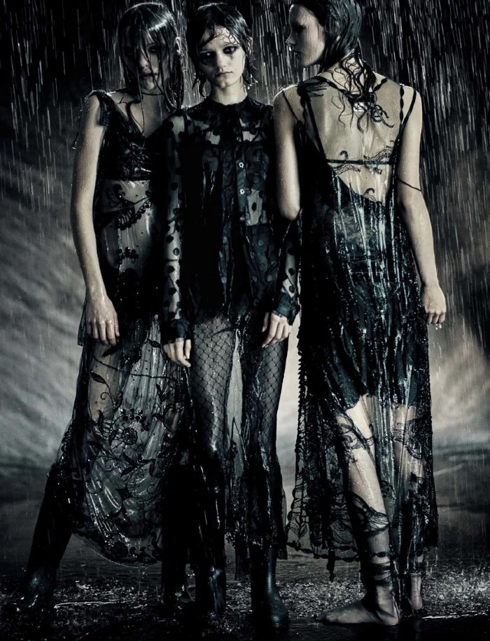 Paolo Roversi Flashes Roos, Ine & Ansley In 'Through the Looking Glass' For Vogue Australia August 2017
