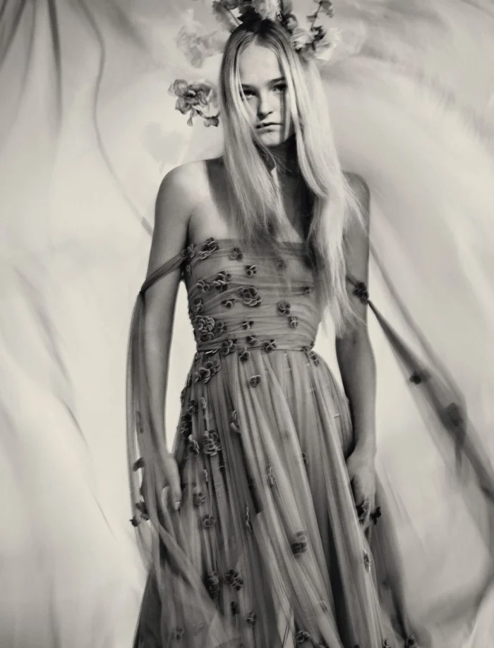 Model Sara Grace Wallerstedt is styled by Danielle van Camp in an engaging beauty editorial, lensed by Paolo Roversi for Sunday Times Style Magazine UK November 3, 2019./ Hair by Odile Gilbert; makeup by Mary Greenwell