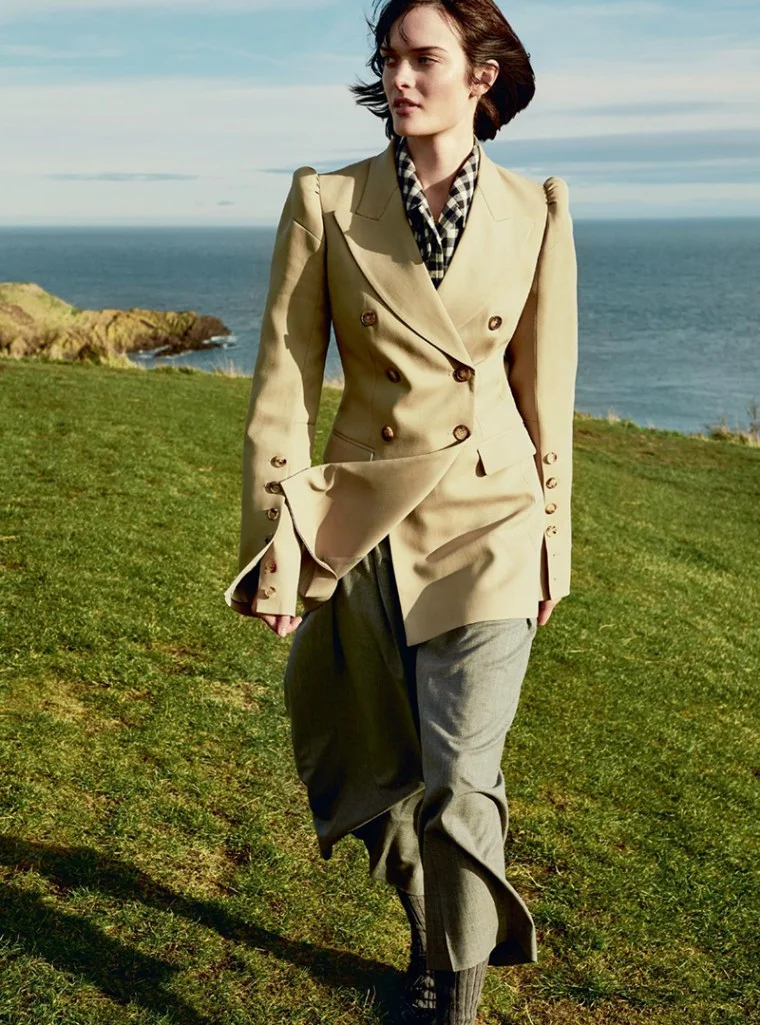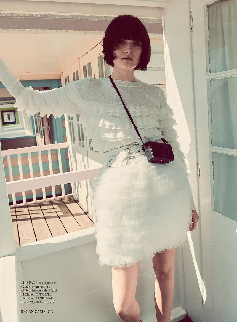 Model Sam Rollinson is styled by Miranda Almond in ‘Seaside Savvy’, lensed by Regan Cameron for Harper’s Bazaar UK October 2019./ Hair by Linda Shalabi; makeup by Anita Keeling