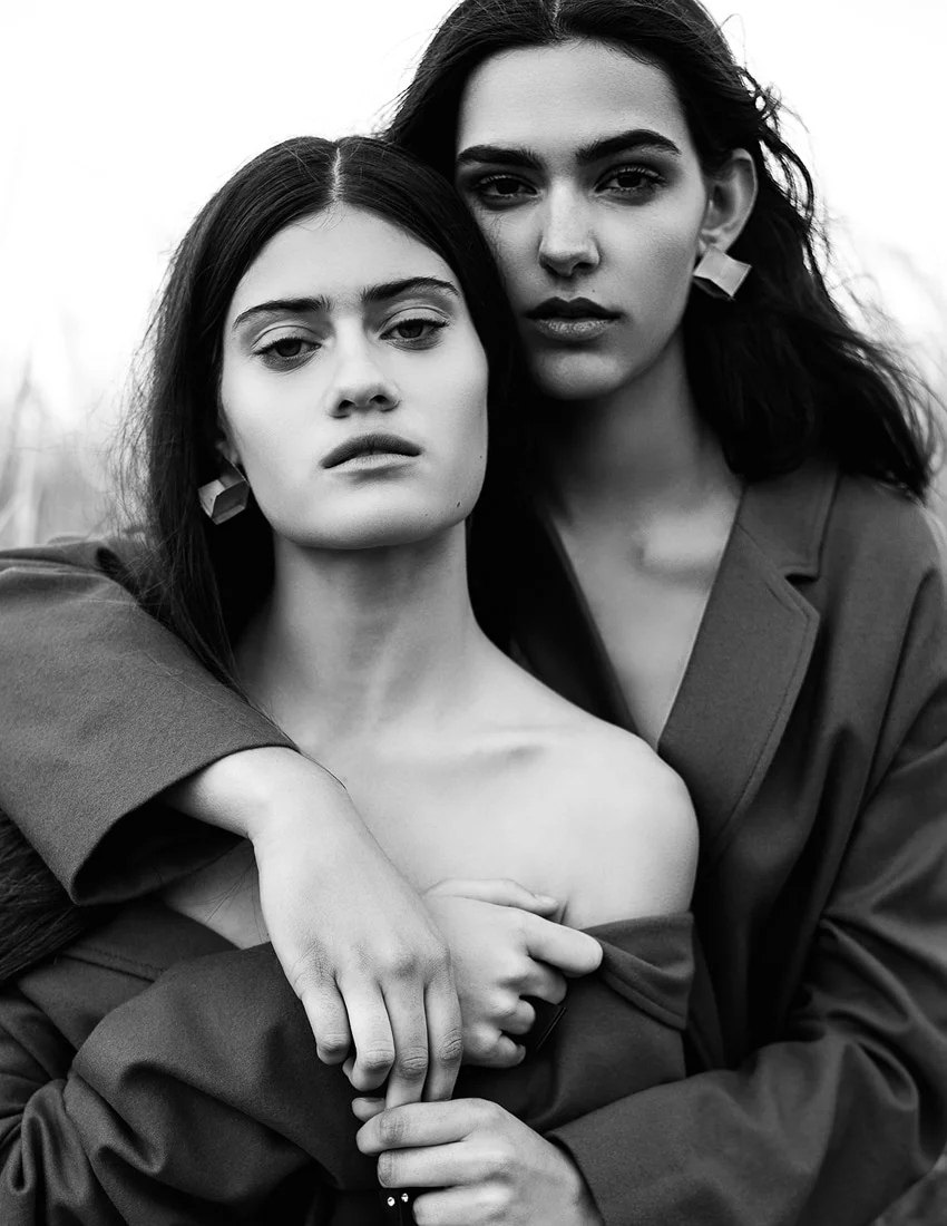 Models Ana Galan and Izarbe Zumeta are styled in tailored sobriety by Alex Montoya. Photographers Diego Reindel and Victor Gonzalez capture the fall fashion landscape for Schön Magazine July 2017. /Hair & makeup by Kevin Gomez