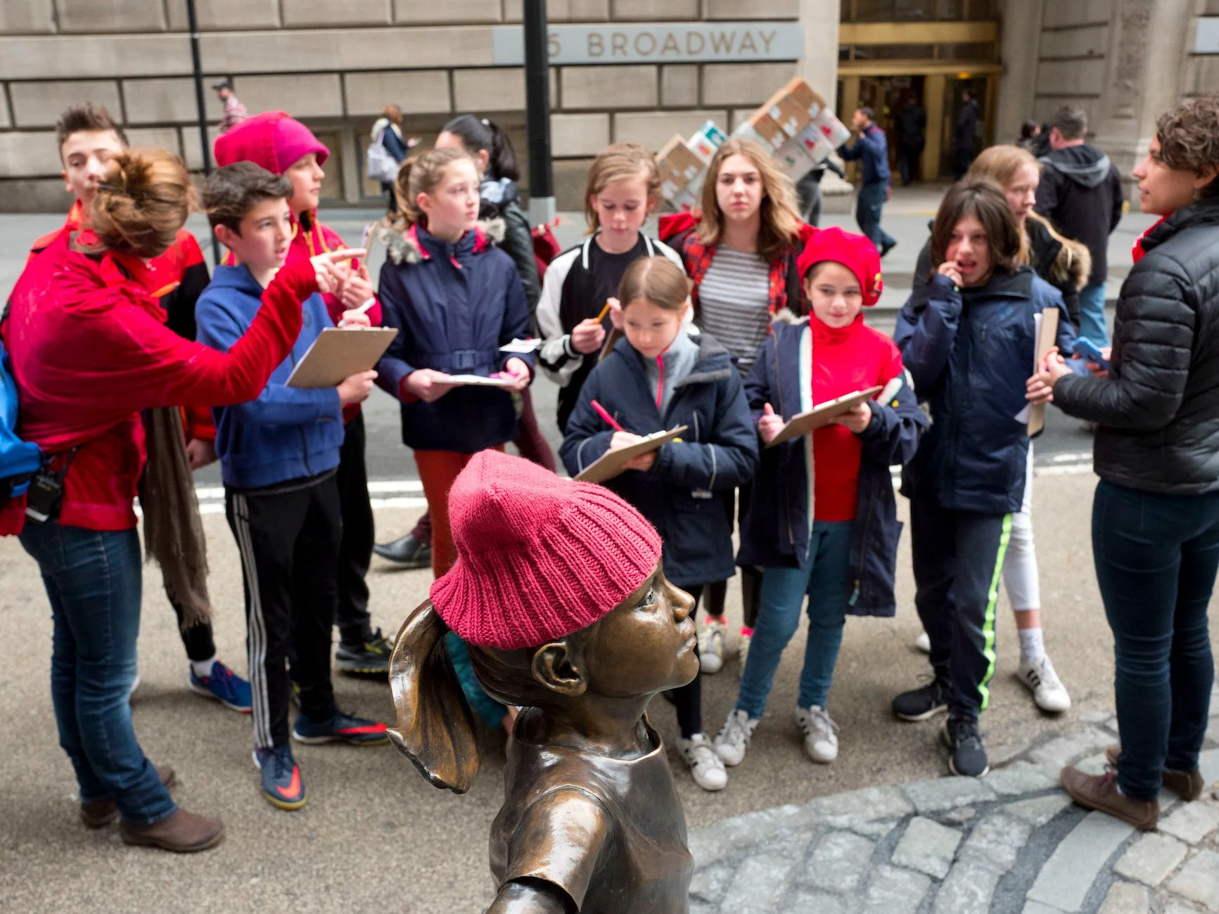 On International Women's Day, AOC introduced you to 'A Fearless Girl' the defiant 4 ft bronze little girl facing off against Wall Street's 'Charging Bull' in Bowling Green lower Manhattan. She is part of a campaign by State Street Global Advisers to insist that corporate boards add more women.  People are clamoring to make 'A Fearless Girl' a permanent fixture as a foil to the Wall Street'Charging Bull' sculpture, and our instincts suggest that we will all get our wish.