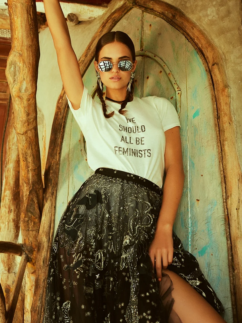 Model Nadja Bender is styled by Cristina Garcia Vivanco in true grit woman leather jackets and combat boots from Armani, Gucci, Loewe and more. Photographer Tomas de la Fuente captures Nadja wearing a fearless attitude for Telva Magazine October 2019.