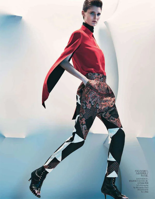 Vogue Spain January 2013 editorial photographed by Giampaola Sgura shows modern-woman, graphic contrast with the use of black and white. Stylist Ana Tovar pulls together 60’s inspired prints and solids modeled by Anne Vyalitsyna.