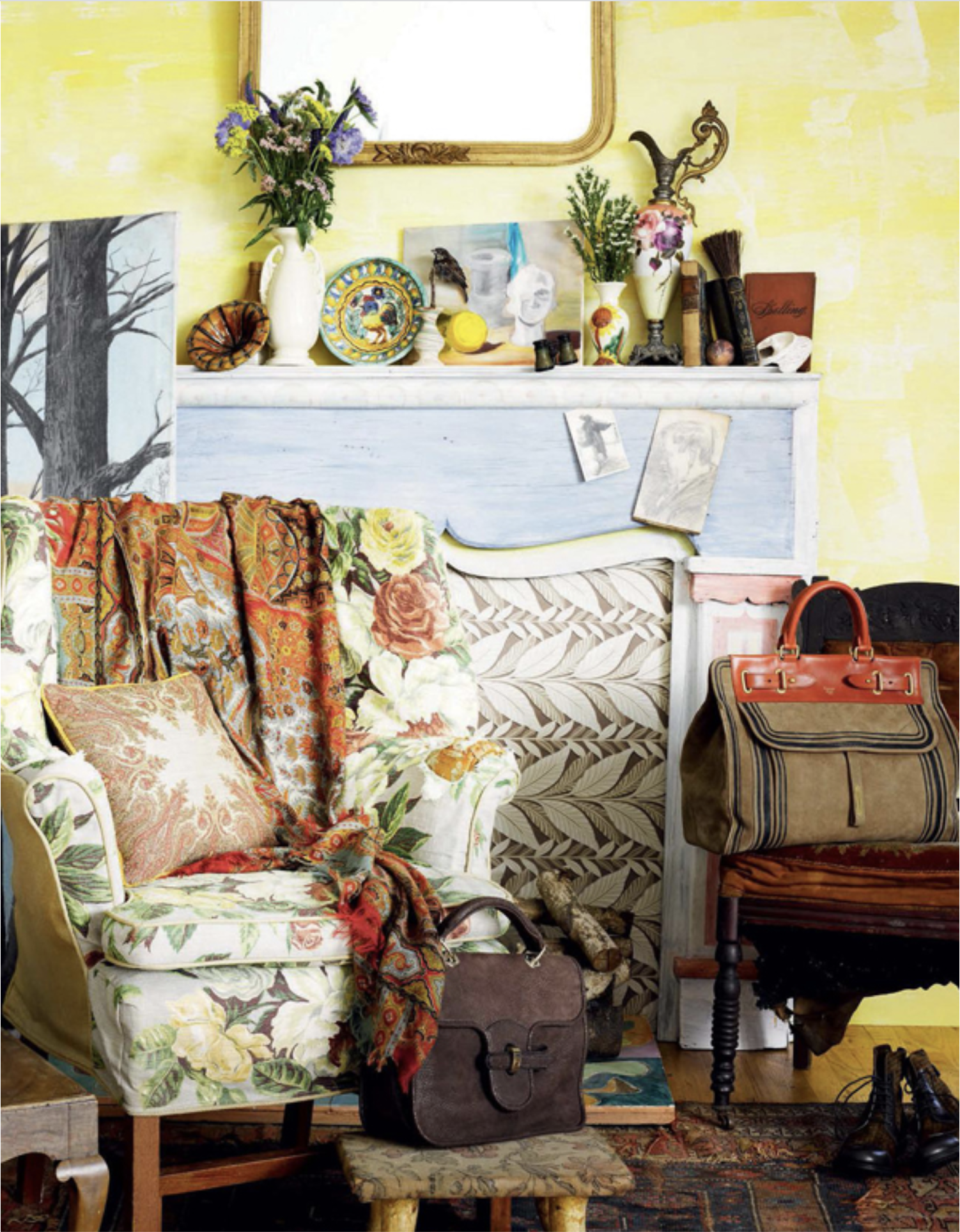 In ‘Bloomsbury’, colours, art and vintage accessories are selected by stylist Giulia Foroni for this shoot lensed by Carlton Davis. Featured in the pages of Marie Claire Italy this September 2013 are footwear, jewelry and old-fashioned accessories, ensuring the shots are unconventional and stylish.